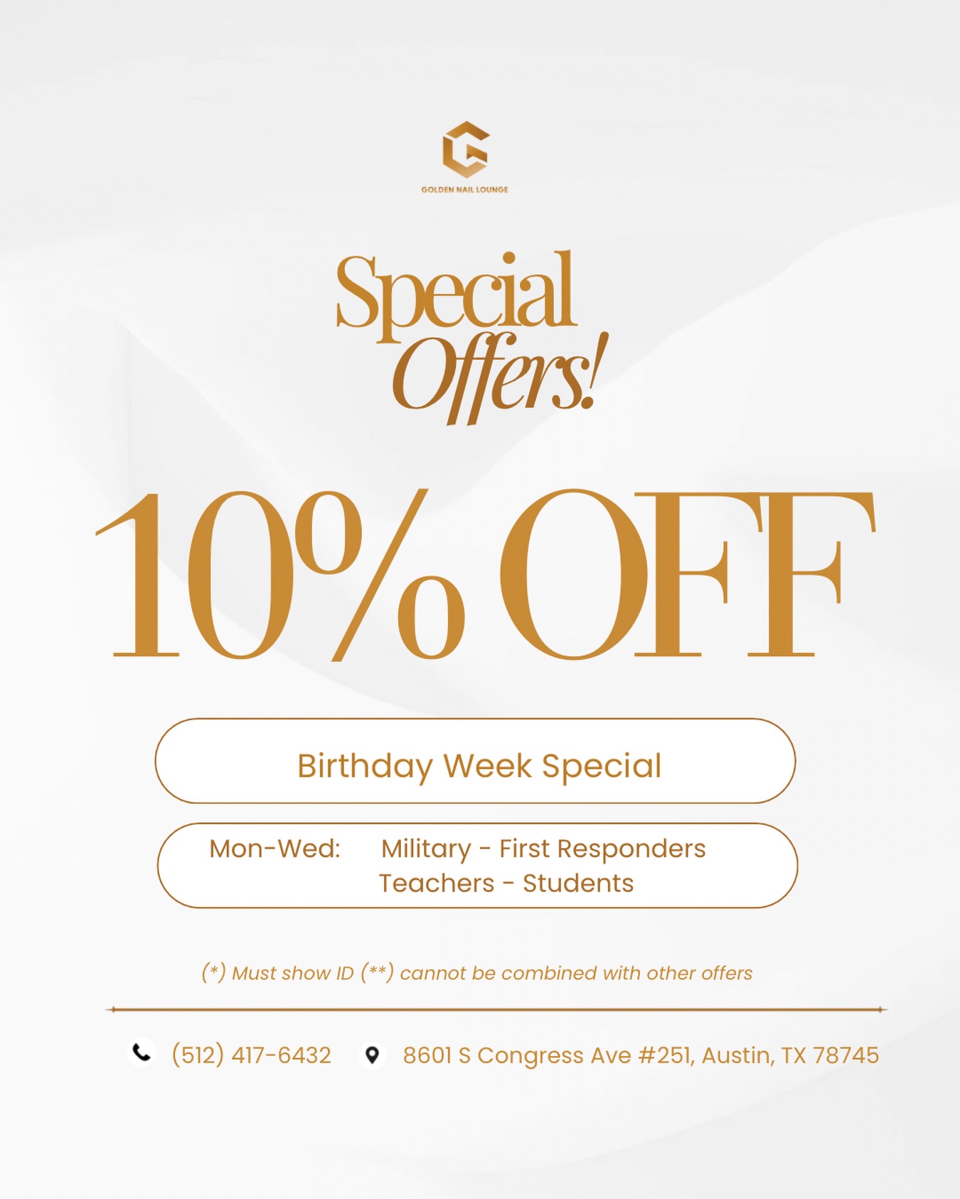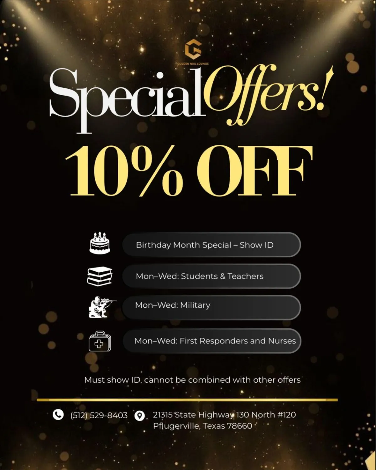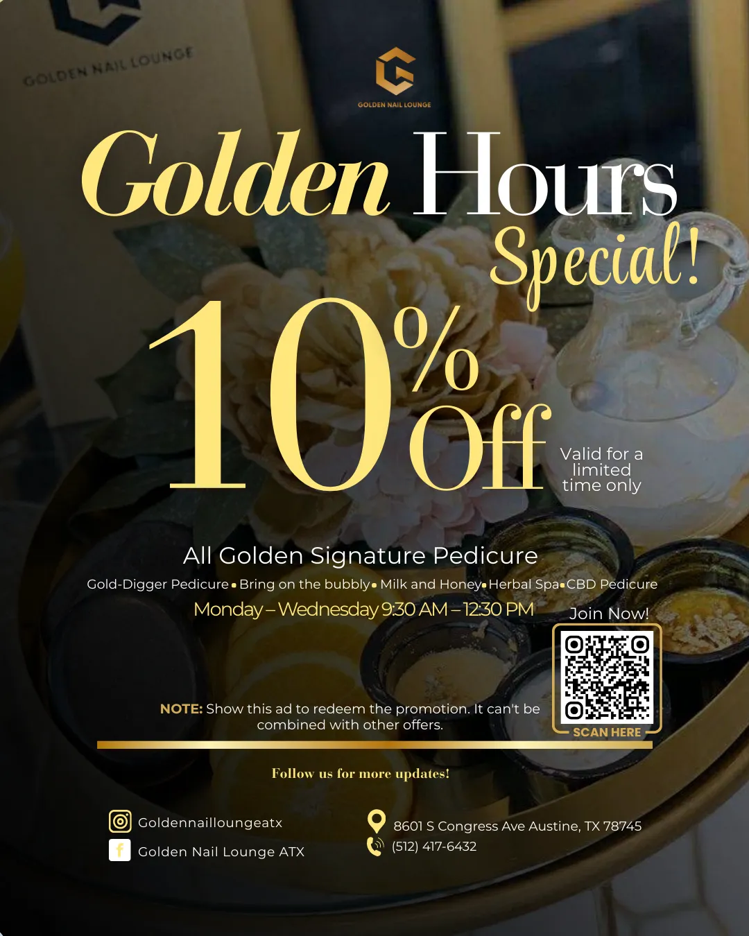 Golden Nail Lounge ATX | 8601 South Congress Avenue Suite 215, Austin Texas 78745
